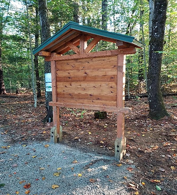 Thank you to the Tamworth Outing Club for sponsoring the construction of the kiosk that will be located at the beginning of the trail. The kiosk as well as the resting benches along the trail and on the viewing platform will be built by Recon Trail Design from Parsonsfield, ME.